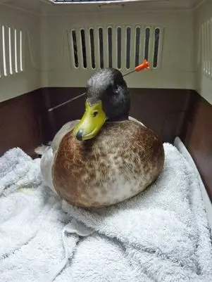 Pato sobrevive após ter pescoço atravessado por dardo de 13 cm