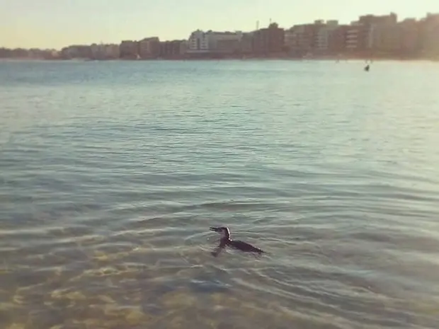Pinguim chama atenção ao nadar na Praia do Forte em Cabo Frio (RJ)