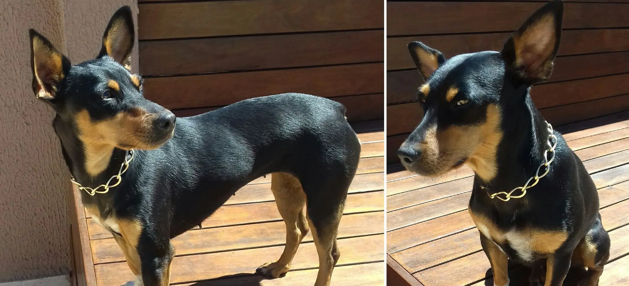 Mestiça de pinscher está para adoção em Belo Horizonte (MG)