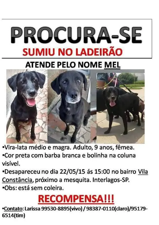 Tutora procura por cão desaparecido em Mongaguá (SP)