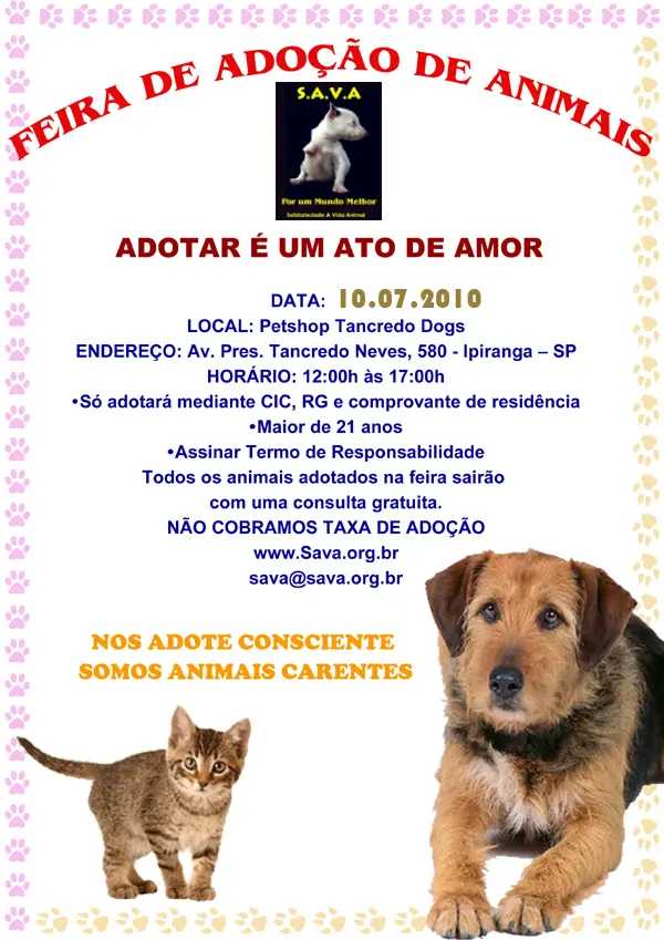 ONG Sava promove feira de adoção dia 26/2 em SP