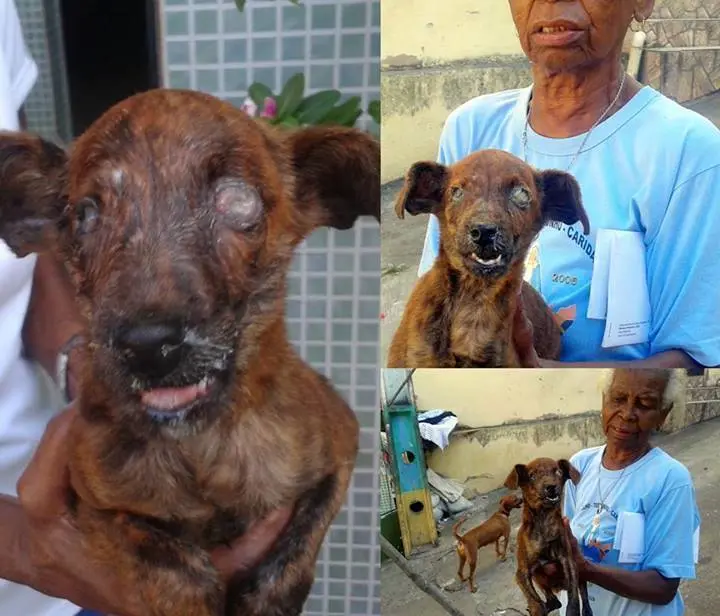 Cão que nasceu cego precisa de tratamento no Alto das Pombas