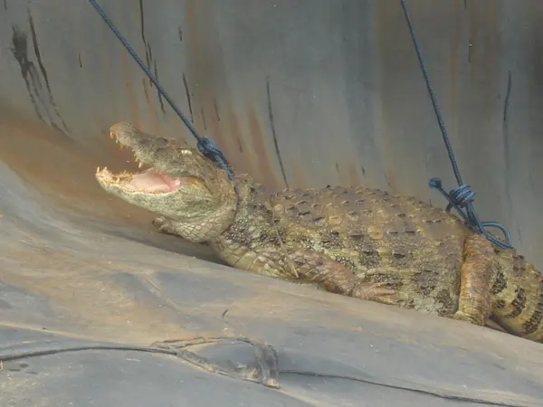 Funcionários encontram jacaré nos fundos de indústria de fibras