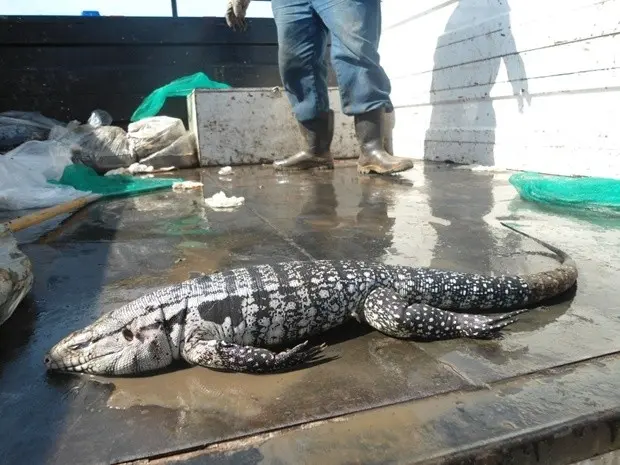 Lagarto é encontrado morto após derramamento de caramelo em rio