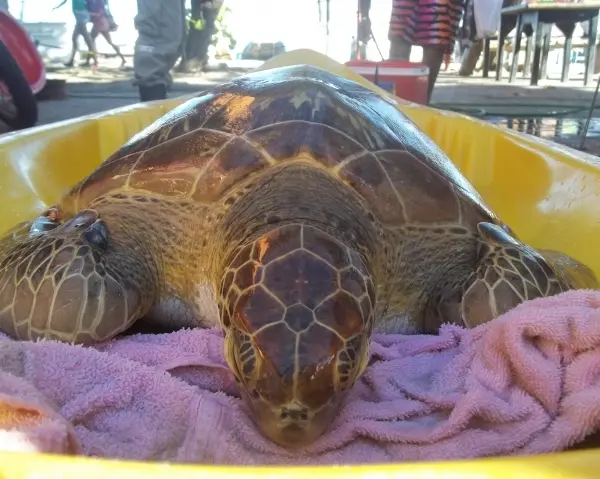 Tartaruga-verde é salva de pescador em Linhares (ES)
