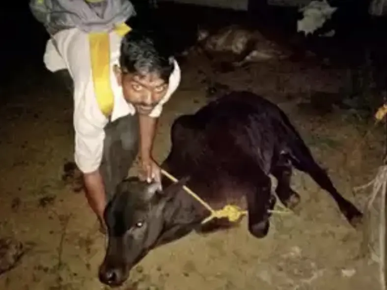 Vaca e bezerro atingidos por ônibus são salvos por indiano