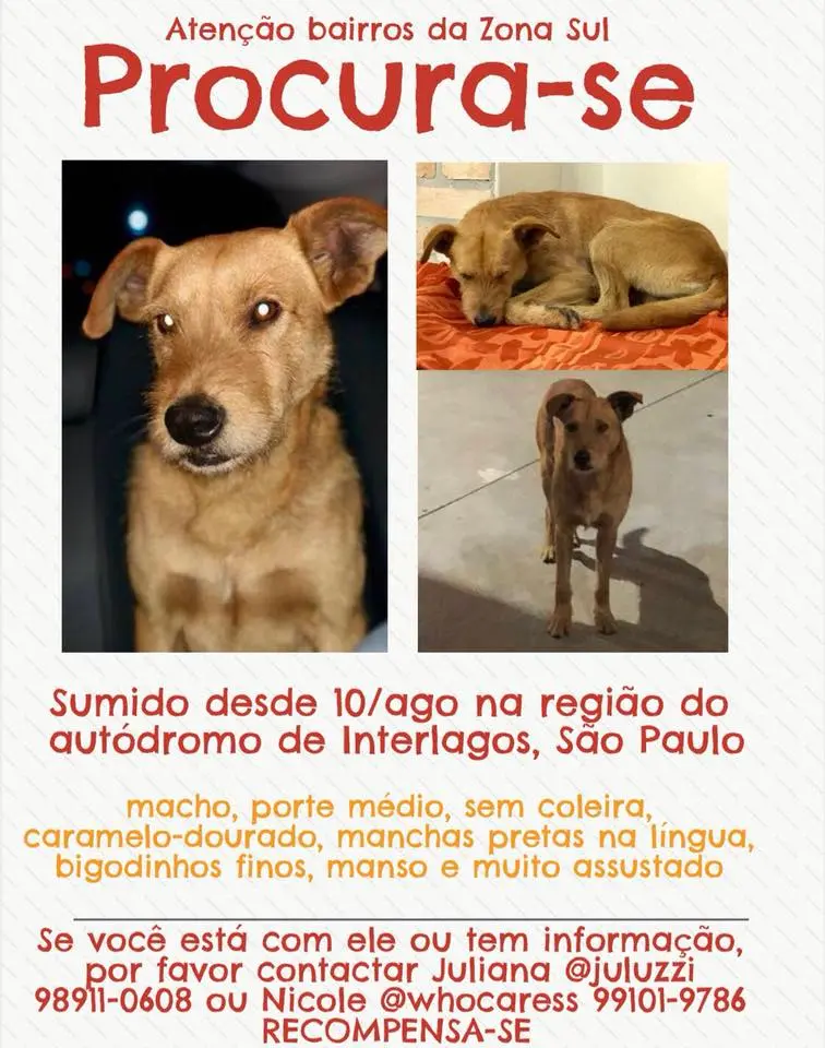 Cãozinho quase atropelado na zona sul de SP está desaparecido há mais de uma semana