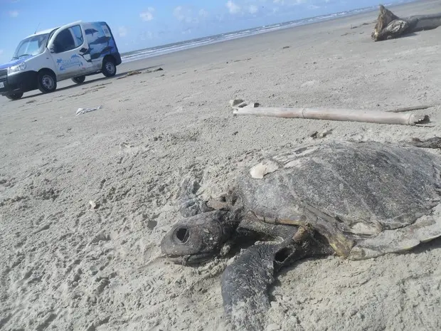 Duas tartarugas foram encontradas em uma praia de Ilha Comprida, no litoral de São Paulo, na manhã desta quarta-feira (4). Apenas um dos animais estava vivo e acabou virando atração para turistas e moradores da cidade que registraram o resgate em fotos.