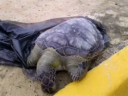 Uma tartaruga marinha (fotos) foi encontrada na orla da praia de Piedade, em Jaboatão dos Guararapes, na Região Metropolitana do Recife, PE, durante a manhã desta quarta-feira (6). O animal já estava morto e funcionários da limpeza do município colocaram a tartaruga em um saco plástico.