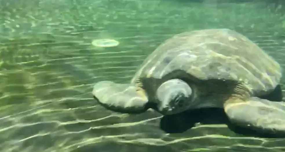 Segundo o centro, o animal estava com as duas nadadeiras machucadas e deve permanecer em observação até se recuperar por completo.