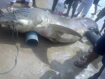 Na madrugada de terça-feira, 4, um tubarão fêmea da espécie martelo, pesando 600 kg, grávida de cerca de 20 filhotes, foi vítima de pescadores na praia de Jacumã, litoral sul da Paraíba.