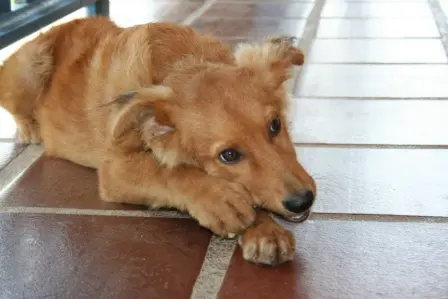 Meu nome é Nescau, tenho 10 meses, sou castrado, porte médio e muito dócil. Estou perdido e preciso encontrar minha tutora. Tenho uma coleira bege no pescoço.