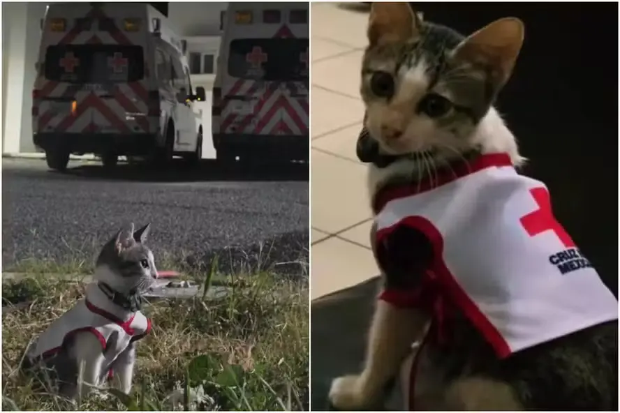 A Cruz Vermelha de Ciudad Victoria, no estado de Tamaulipas, no México, tem um novo membro que conquistou os voluntários e a comunidade local: um pequeno gato resgatado que eles batizaram de “Urgencio”.