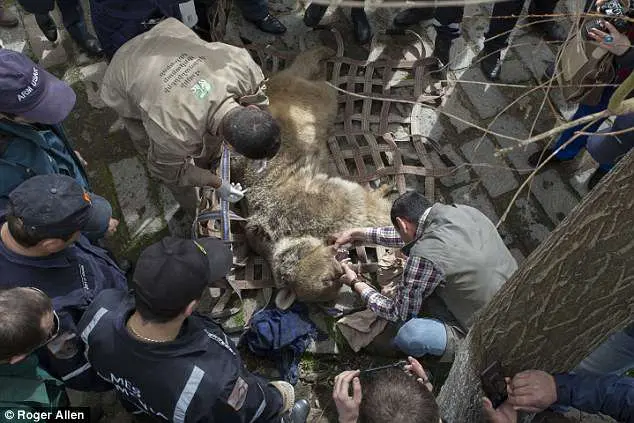 Desacostumado à atenção, a ursa da síria precisou ser sedada por um veterinário antes que pudesse ser colocada em uma maca especial. Foi a primeira vez que o animal foi cuidado em anos.
