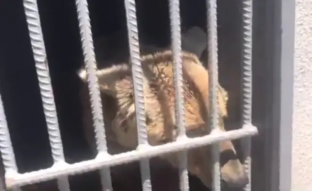 Devido ao tempo que passou encarcerado, o urso mal conseguia se mexer, então os funcionários tiveram que remover as barras e arrastar o urso para fora de sua cela.