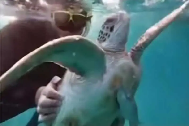 O animal aparece cercado por várias pessoas, o que dificulta sua subida à superfície. Em um dos momentos do vídeo, o homem parece pisar no casco da tartaruga enquanto ela tenta escapar. Especialistas alertam que situações como essa comprometem o bem-estar da espécie, já ameaçada pela perda de habitat e pela interação humana excessiva.